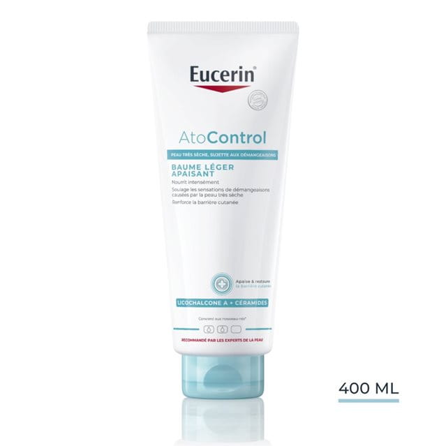 Le Baume Apaisant Eucerin® AtoControl est un baume pour le corps convenant pour un usage quotidien et spécialement formulé pour apaiser et hydrater intensément les peaux très sèches, irritées et sujettes aux démangeaisons. Ce baume huile-dans-eau, léger mais nourrissant, est enrichi en Licochalcone A apaisante, en Céramides et en beurre de Karité pour renforcer la barrière cutanée et soulager la sécheresse et les sensations de démangeaisons*. Il hydrate instantanément la peau pour la rendre douce et lisse et, avec une application régulière, l'état de la peau s'améliore sensiblement.