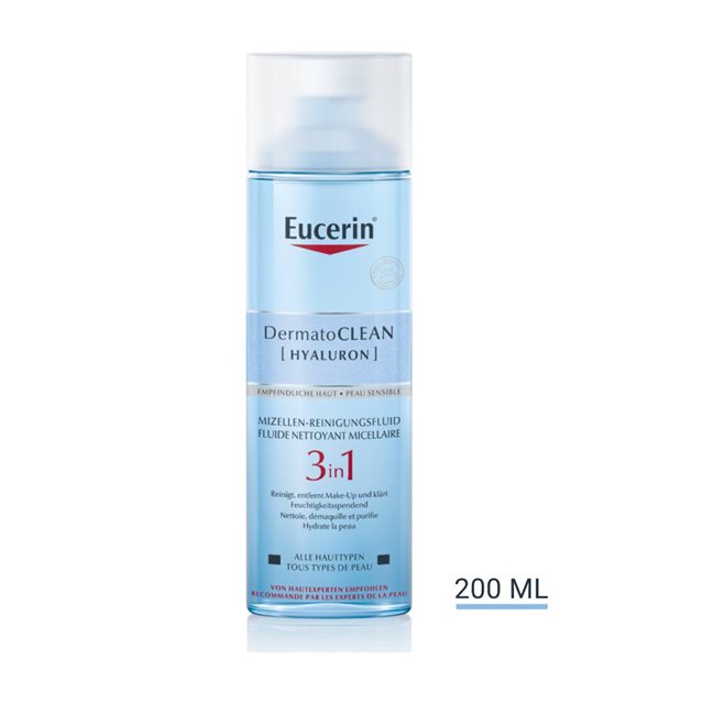 L'Eau Micellaire 3en1 Eucerin DermatoCLEAN [HYALURON] est un nettoyant rapide et pratique pour le visage qui convient à tous les types de peau, y compris les peaux sensibles - ceci a été cliniquement et dermatologiquement prouvé.
