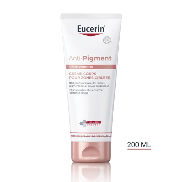 La Crème Corps pour Zones Ciblées Eucerin ANTI-PIGMENT agit de façon ciblée contre les taches brunes, les zones de peau présentant une hyperpigmentation post-inflammatoire et la peau épaissie sur les zones de friction (genoux, coudes).