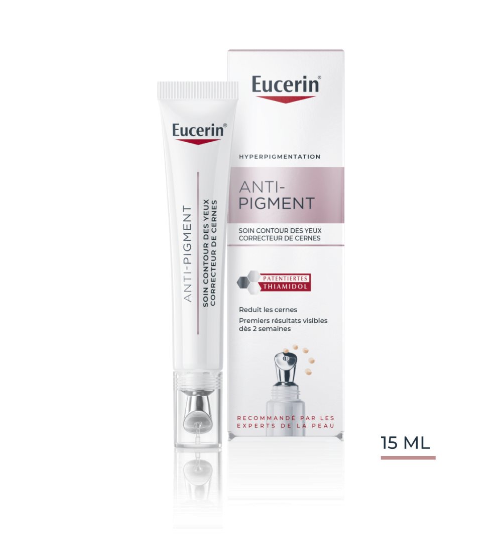 Le Soin contour des yeux correcteur de cernes Eucerin® Anti-Pigment ne protège pas la peau du soleil. Comme les rayons du soleil jouent un rôle déterminant dans l'hyperpigmentation, il est important de porter une protection solaire adaptée, même par temps couvert. Si vous appliquez le Soin contour des yeux correcteur de cernes Eucerin® Anti-Pigment le matin, nous vous recommandons d'utiliser ensuite le Soin de jour SPF 30 Eucerin® Anti-Pigment pour atténuer les taches pigmentaires existantes et protéger la peau du soleil, ce qui réduira d'autres problèmes de pigmentation dus au soleil. En cas d'exposition prolongée au soleil, choisissez un indice de protection plus élevé dans la gamme de produits solaires Eucerin®.