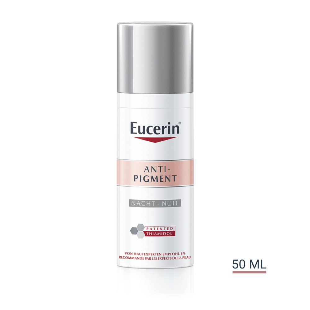Le Soin de nuit Anti-Pigment Eucerin® aide à équilibrer la carnation pour un teint plus lumineux et plus régulier.