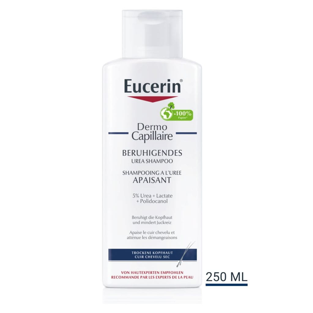 Le Shampooing apaisant à l'Urée Eucerin DermoCapillaire a été spécialement mis au point pour le cuir chevelu sec et irrité. Enrichi en Urée et en Lactate, deux facteurs naturels d'hydratation, il apporte au cuir chevelu sec et irrité le soin nourrissant dont il a besoin.