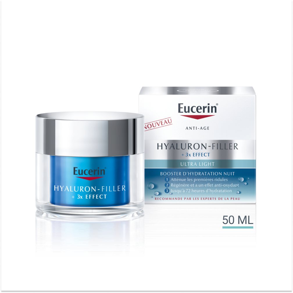Le Gel Hydra Nuit Eucerin Hyaluron-Filler +3x Effect est cliniquement et dermatologiquement prouvé pour hydrater immédiatement et durablement et repulper la peau. Il est idéal si votre peau semble déshydratée ou si elle est sèche au toucher.