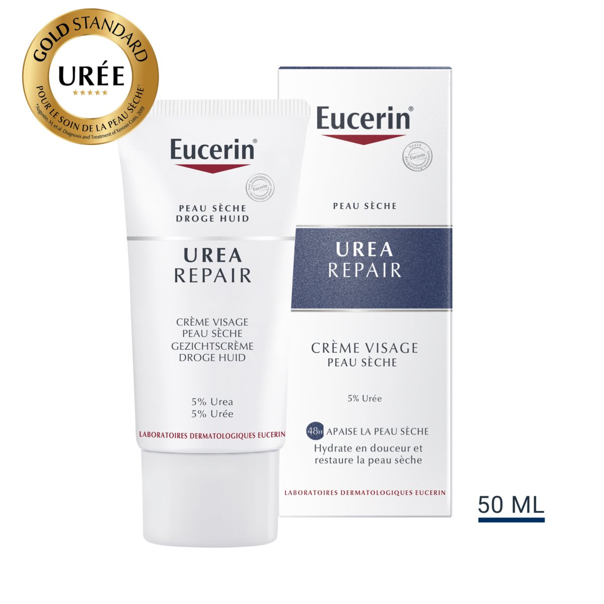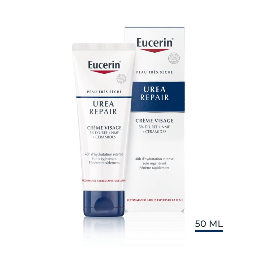 La peau redevient sensiblement plus lisse et plus souple. Eucerin UreaRepair Crème Visage est un soin de jour hydratant à absorption rapide pour un usage quotidien sur les peaux sèches à très sèches sujettes à la desquamation et aux sensations de tiraillement. Enrichie en Urée et en Lactate, deux substances qui retiennent les molécules d’eau et sont naturellement présentes dans la peau, la crème hydrate immédiatement la peau sèche du visage. La Crème Visage UreaRepair préserve également l'hydratation et la peau rugueuse devient plus lisse. Elle est idéale comme base de maquillage ou après le rasage.