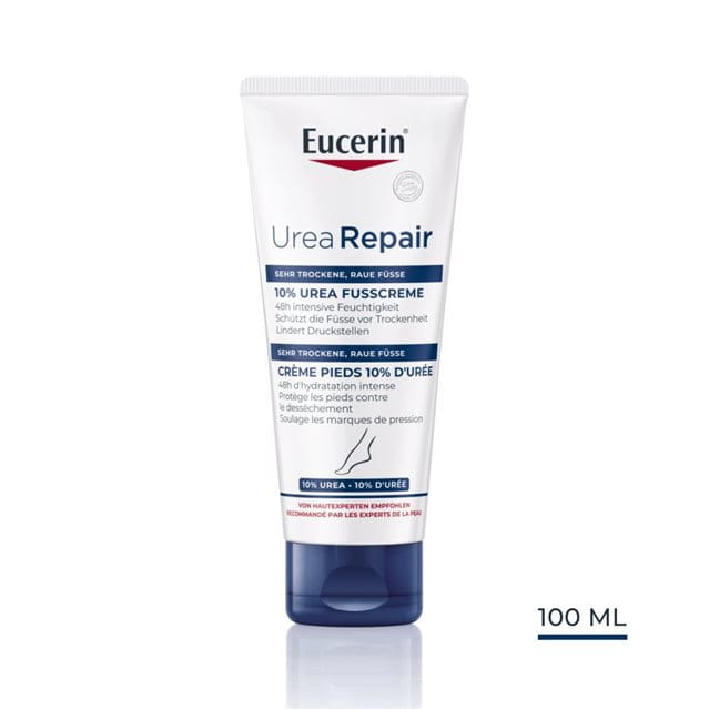 Eucerin UreaRepair Crème Pieds 10% Urée procure à la peau très sèche, rugueuse des pieds l'hydratation intense dont elle a besoin, pour un soulagement immédiat des signes caractéristiques de la peau sèche sur les pieds, tels que la rugosité, les craquelures, les sensations de tiraillements. Elle procure à la peau sèche une résistance prolongée.