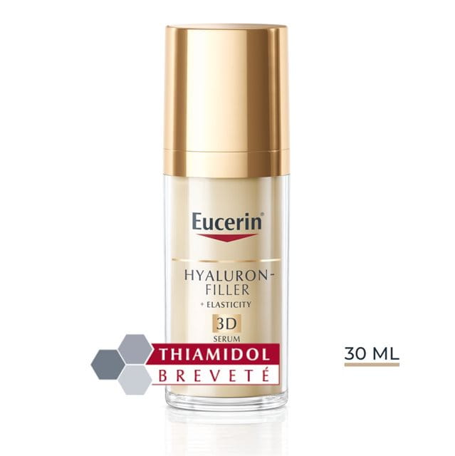Bien que le sérum contienne de l’acide hyaluronique à chaîne longue et à chaîne courte qui améliore l’hydratation de la peau, il n’a pas été conçu pour remplacer une crème de jour, une crème de nuit ou un soin spécifique pour le contour des yeux, mais pour compléter leur effet. Nous vous recommandons de l’utiliser en association avec d’autres produits de la gamme Eucerin Hyaluron-Filler + Elasticity pour optimiser les résultats.